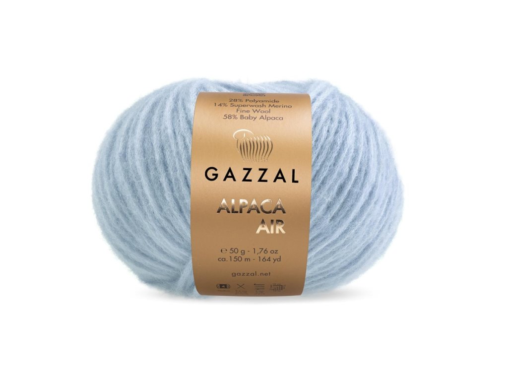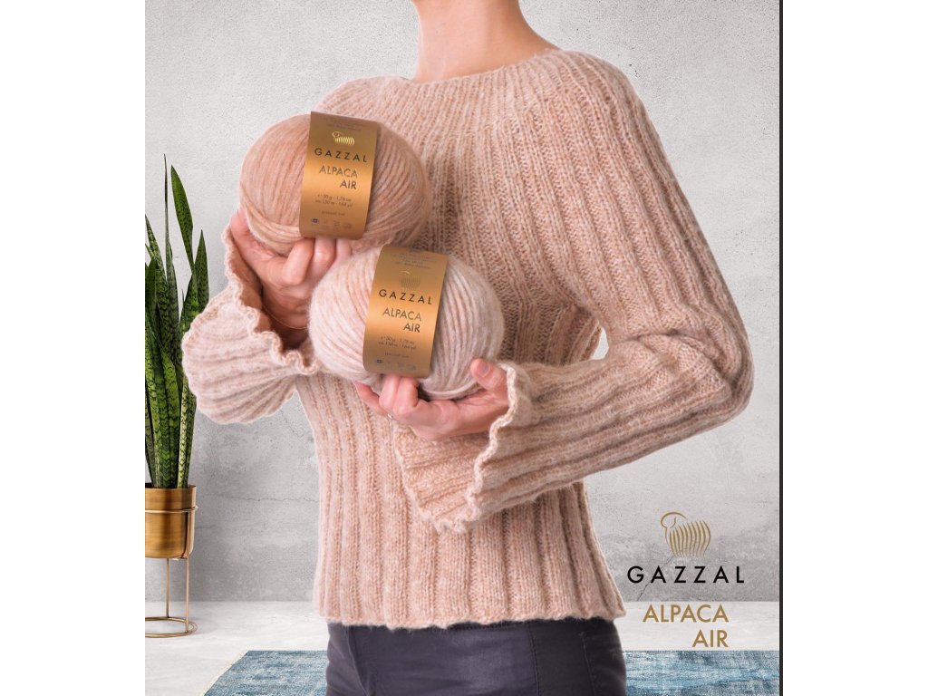 Příze Alpaca Air je luxusní směs s převahou přírodních vláken, která okouzlí svou jemností a nadýchanou lehkostí, je vyrobená jako dutinka. Obsahuje 58 % baby alpaky, 14 % superfine merino vlny a 28 % polyamidu – dohromady ideální kombinace pro hřejivé a zároveň lehoučké úplety.