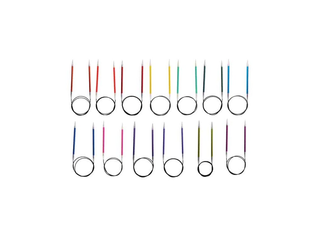 Kvalitní pevné kruhové jehlice řady Zing. Mají ostřejší stříbrnou špičku, každá velikost jehlic je barevně rozlišená.