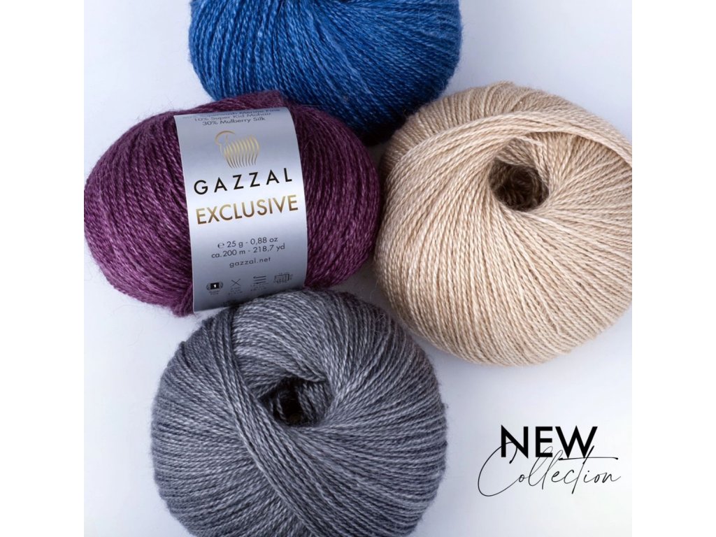 Příze Exclusive je prémiová příze, která spojuje luxusní hebkost, lehkost a odolnost. Morušové hedvábí dává úpletu jemný lesk a hladký povrch, Superwash Merino vlna přidává teplo a pružnost, a Superkid mohér zajišťuje nadýchaný efekt a dlouhou životnost hotových projektů.