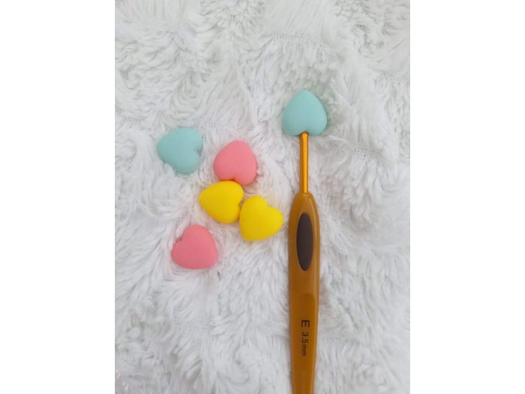 Silikonová zarážka na jehlice - Srdíčka mix barev - 6ks