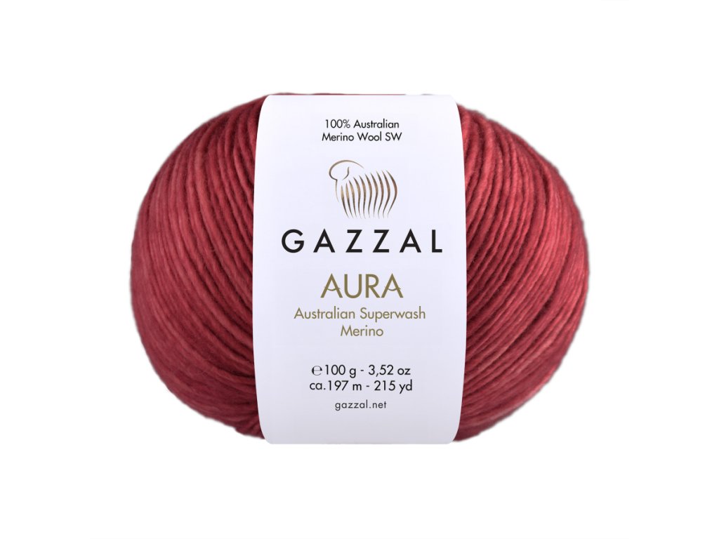 Příze Aura od Gazzal je luxusní příze z 100% australské superwash merino vlny, která vyniká svou jemností, odolností a pohodlím při nošení. Díky jemné struktuře vláken je příjemná na dotek, nedráždí pokožku, krásně hřeje a zároveň dobře dýchá. Každé klubíčko je ručně barvené, a proto je naprosto jedinečné – barevné přechody vytvářejí originální kombinace, díky nimž se každý projekt stává osobním a neopakovatelným dílem.