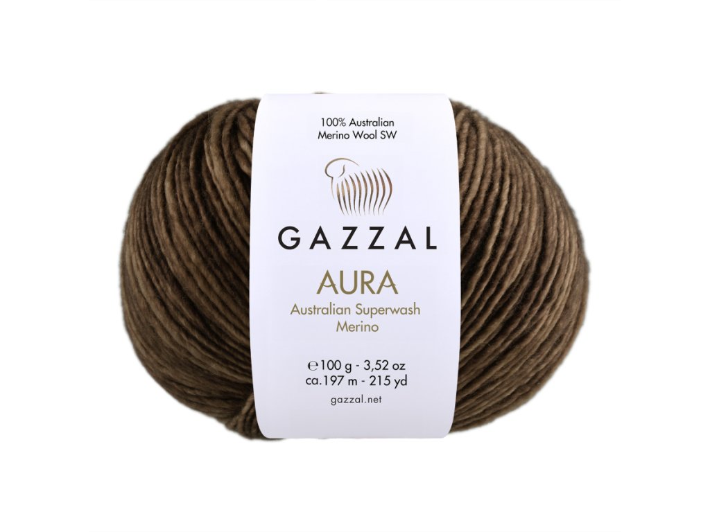 Příze Aura od Gazzal je luxusní příze z 100% australské superwash merino vlny, která vyniká svou jemností, odolností a pohodlím při nošení. Díky jemné struktuře vláken je příjemná na dotek, nedráždí pokožku, krásně hřeje a zároveň dobře dýchá. Každé klubíčko je ručně barvené, a proto je naprosto jedinečné – barevné přechody vytvářejí originální kombinace, díky nimž se každý projekt stává osobním a neopakovatelným dílem.