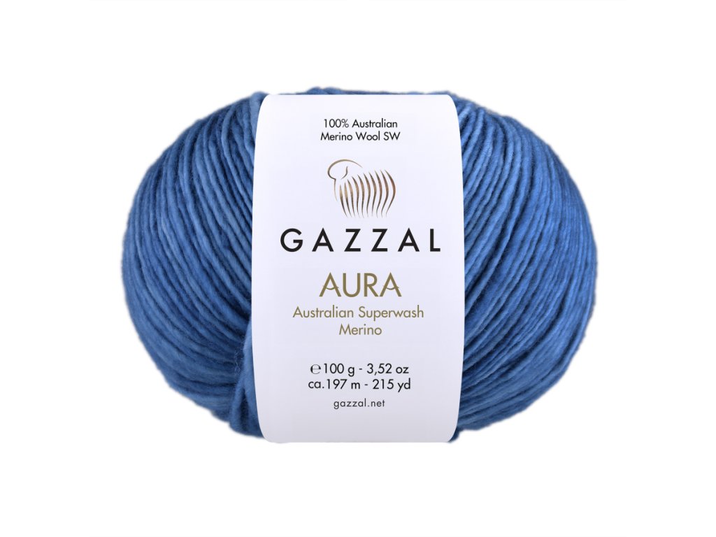 Příze Aura od Gazzal je luxusní příze z 100% australské superwash merino vlny, která vyniká svou jemností, odolností a pohodlím při nošení. Díky jemné struktuře vláken je příjemná na dotek, nedráždí pokožku, krásně hřeje a zároveň dobře dýchá. Každé klubíčko je ručně barvené, a proto je naprosto jedinečné – barevné přechody vytvářejí originální kombinace, díky nimž se každý projekt stává osobním a neopakovatelným dílem.
