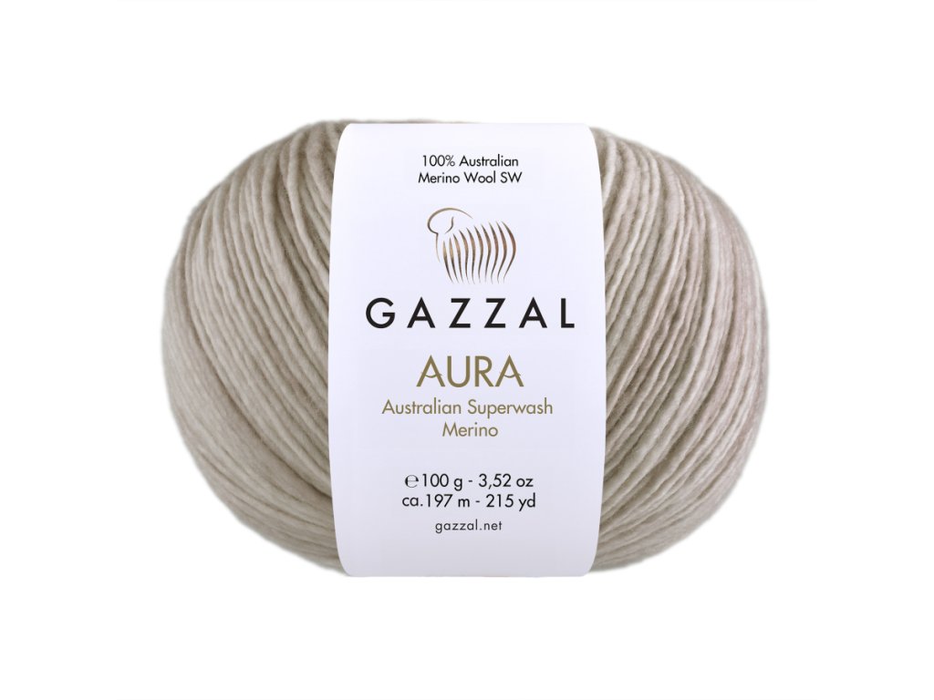 Příze Aura od Gazzal je luxusní příze z 100% australské superwash merino vlny, která vyniká svou jemností, odolností a pohodlím při nošení. Díky jemné struktuře vláken je příjemná na dotek, nedráždí pokožku, krásně hřeje a zároveň dobře dýchá. Každé klubíčko je ručně barvené, a proto je naprosto jedinečné – barevné přechody vytvářejí originální kombinace, díky nimž se každý projekt stává osobním a neopakovatelným dílem.