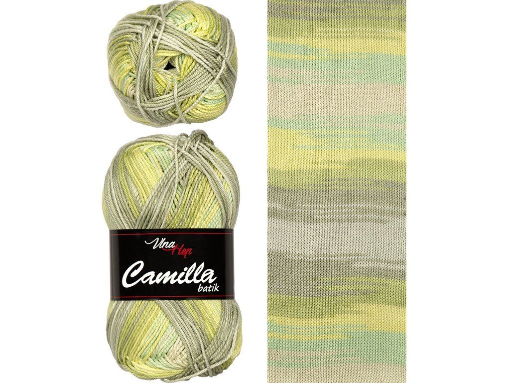- Camilla batik je ideální na originální háčkované hračky, barevné čepičky, síťovky, kabelky nebo prostírání. Bavlna je skvělý materiál na letní úplety – veselá trička, tílka nebo šaty. Nicméně tím, že je Camilla tužší a pevná, nemusí každému na oblečení vyhovovat (např. u splývavých modelů), což je potřeba vzít v úvahu při výběru střihu.