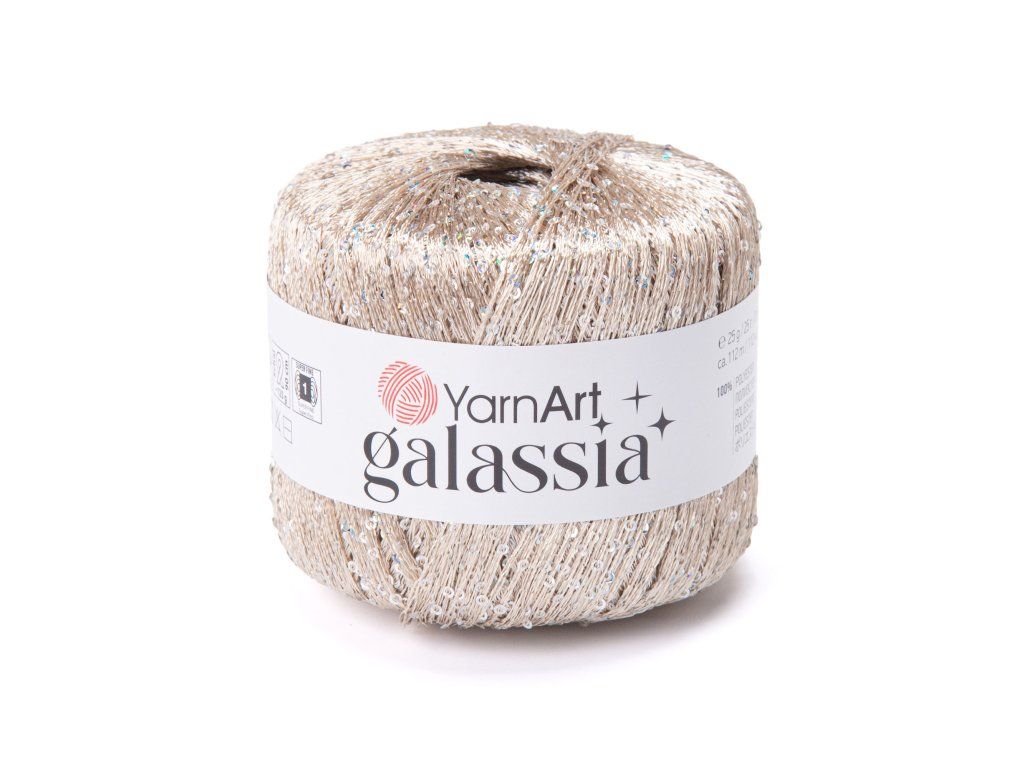 Příze YarnArt Galassia je luxusní příze, která i z toho nejjednoduššího svetříku vytvoří mistrovské dílo. Tato jemná polyesterová nitka je posázena drobnými flitry, které odrážejí světlo při každém Vašem pohybu. Můžete i použít jak na samostatné pletení nebo háčkovaná, tak jako příplet s flitry k jiné přízi.