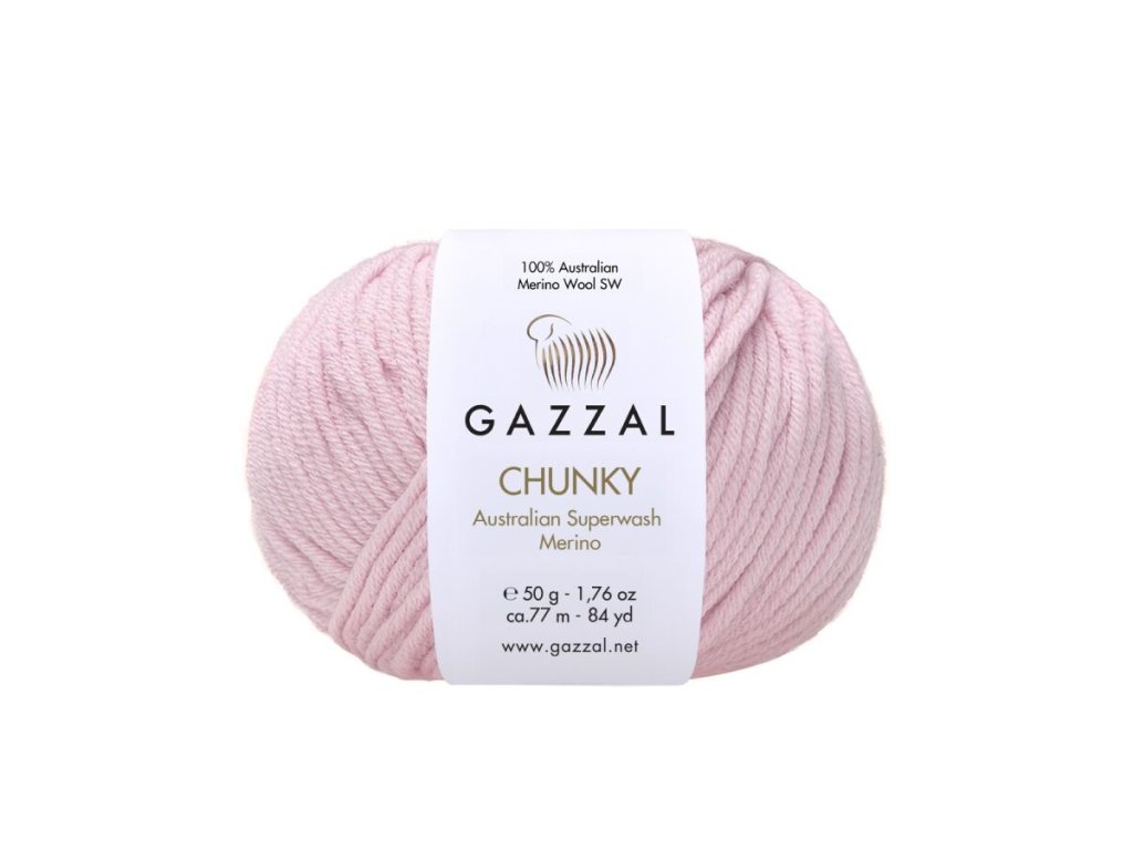 Příze Gazzal Chunky je silnější a mimořádně hřejivá příze vyrobená ze 100% australské merino vlny Superwash, která patří mezi nejkvalitnější přírodní vlákna na světě. Merino vyniká svou jemností, prodyšností a schopností skvěle regulovat teplotu – zahřeje, ale zároveň se nepřehřívá. Díky tomu je příze příjemná i citlivější pokožce a výborně se nosí.