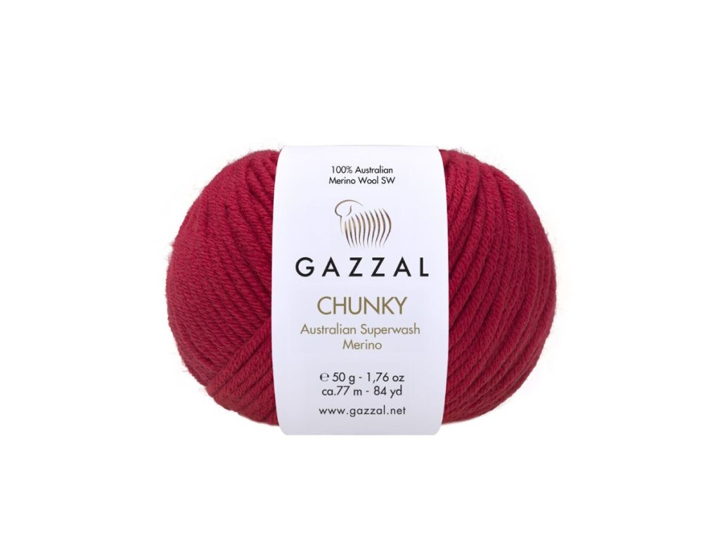 Příze Gazzal Chunky je silnější a mimořádně hřejivá příze vyrobená ze 100% australské merino vlny Superwash, která patří mezi nejkvalitnější přírodní vlákna na světě. Merino vyniká svou jemností, prodyšností a schopností skvěle regulovat teplotu – zahřeje, ale zároveň se nepřehřívá. Díky tomu je příze příjemná i citlivější pokožce a výborně se nosí.