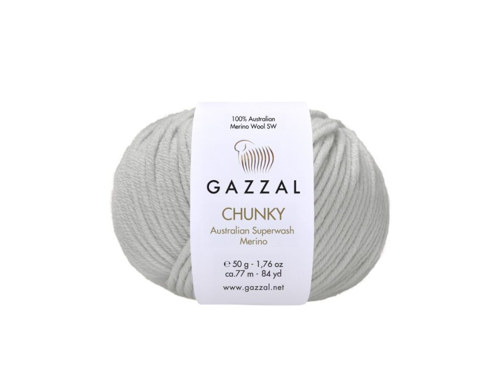 Příze Gazzal Chunky je silnější a mimořádně hřejivá příze vyrobená ze 100% australské merino vlny Superwash, která patří mezi nejkvalitnější přírodní vlákna na světě. Merino vyniká svou jemností, prodyšností a schopností skvěle regulovat teplotu – zahřeje, ale zároveň se nepřehřívá. Díky tomu je příze příjemná i citlivější pokožce a výborně se nosí.