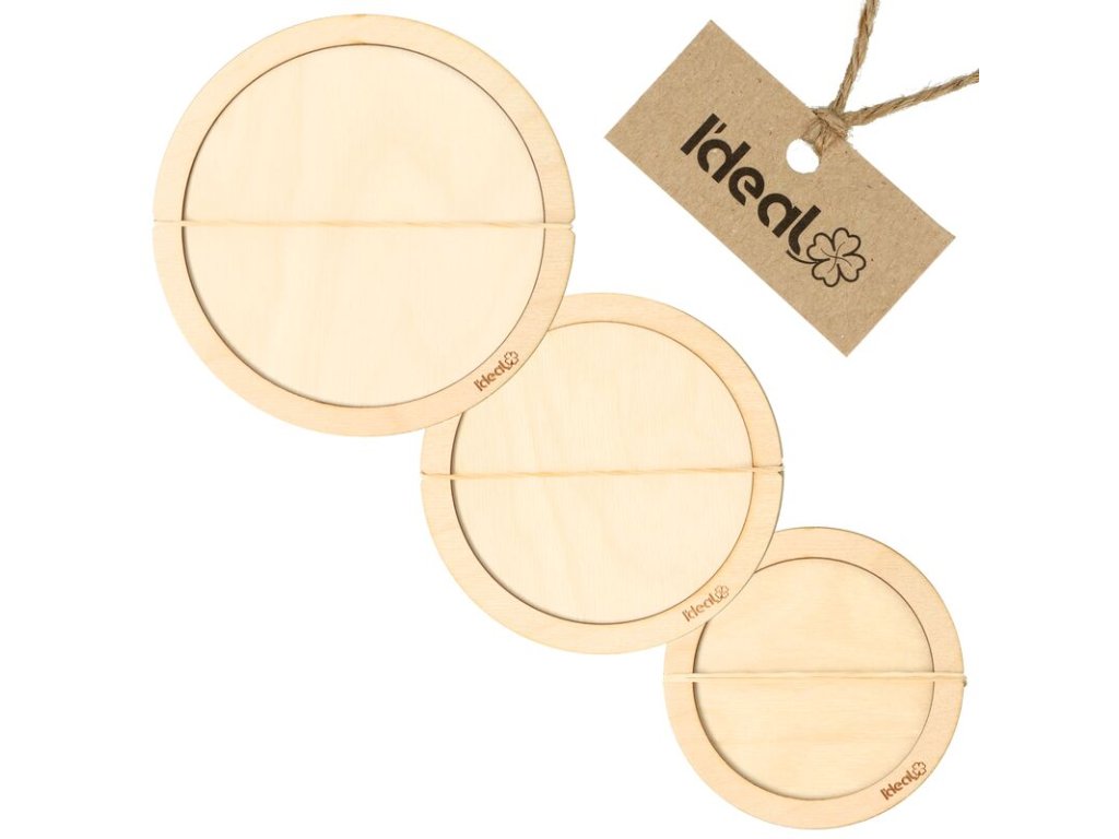Dřevěná šablona slouží jako pomůcka pro dokonale vystřižené kruhy na macrame nebo na podšálky.