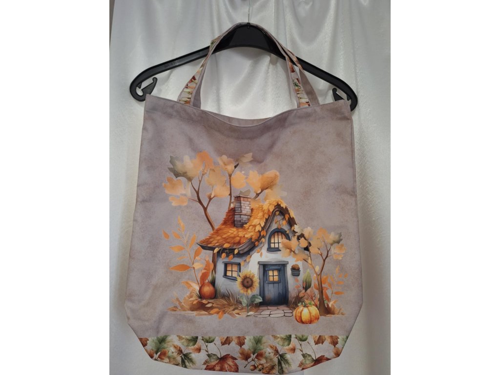 Taška vzor č.50 - podzimní domeček na béžové