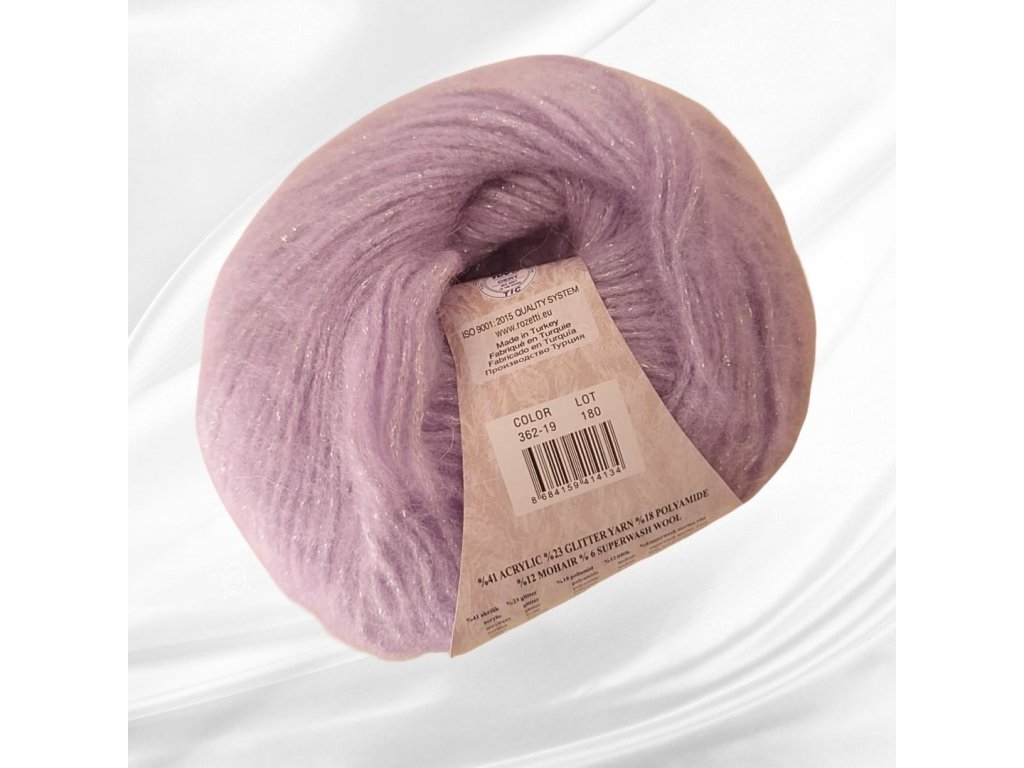 složení: 41 % akryl, 22 % třpytivá nitka, 18 % polyamid,12 % mohér, 6 % vlna